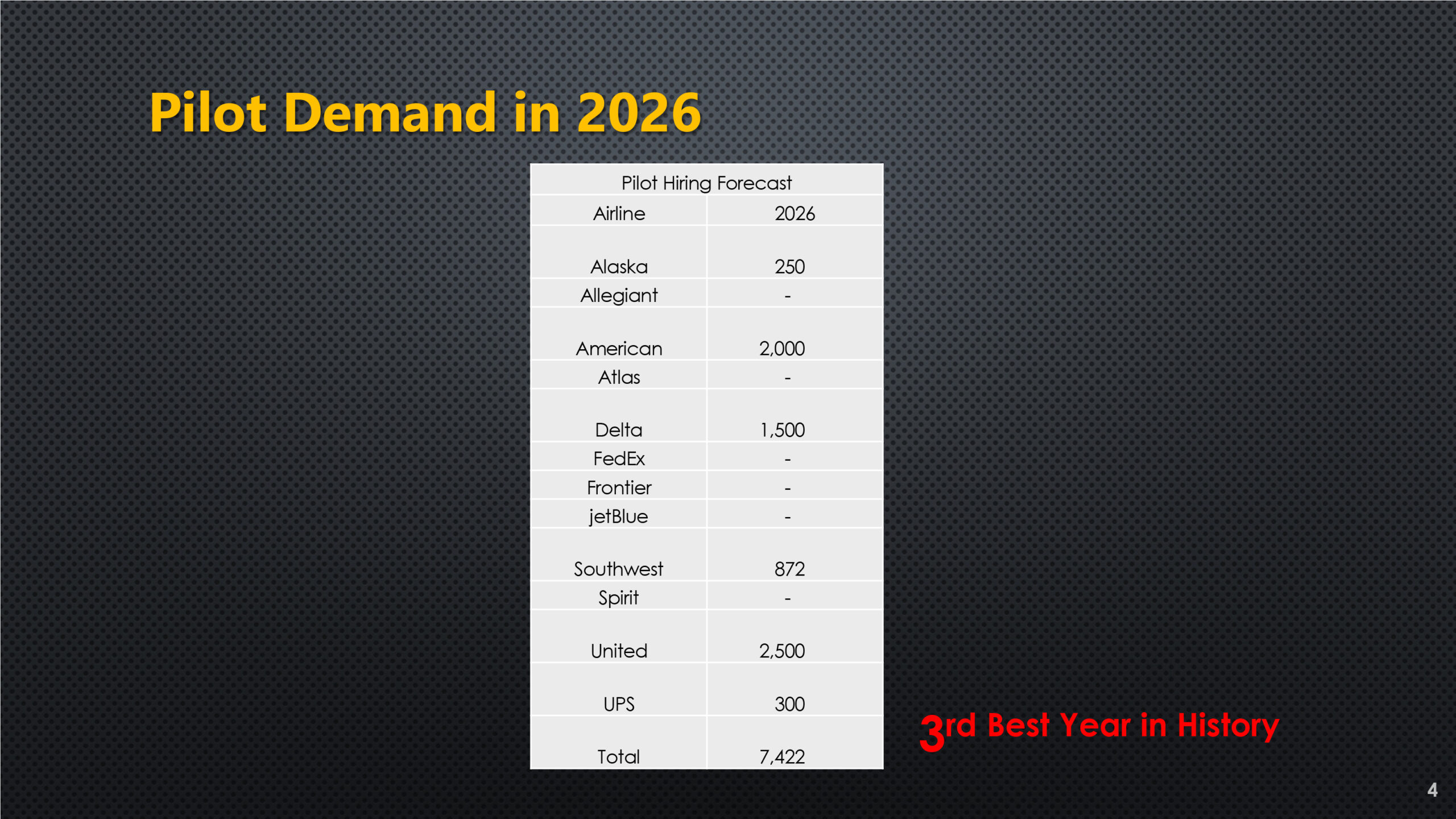 Kit Darby forecast 2026 pilot hiring to be the 3rd best year in history with over 7,400 new jobs at the Majors!